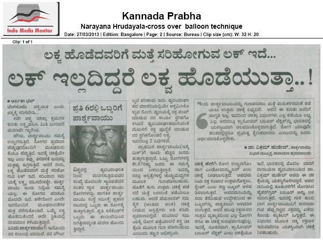 Article on Stroke published in Kannada Prabha